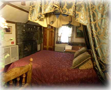 Draping vines over the Jacuzzi, half canopy bed, Lady Marian's dress, and Robin's tights. Wood burning fireplace, Jacuzzi for 2, microwave, compact refrigerator, TV, queen size bed, in-room coffee maker, and hair dryer. (288 sq ft)